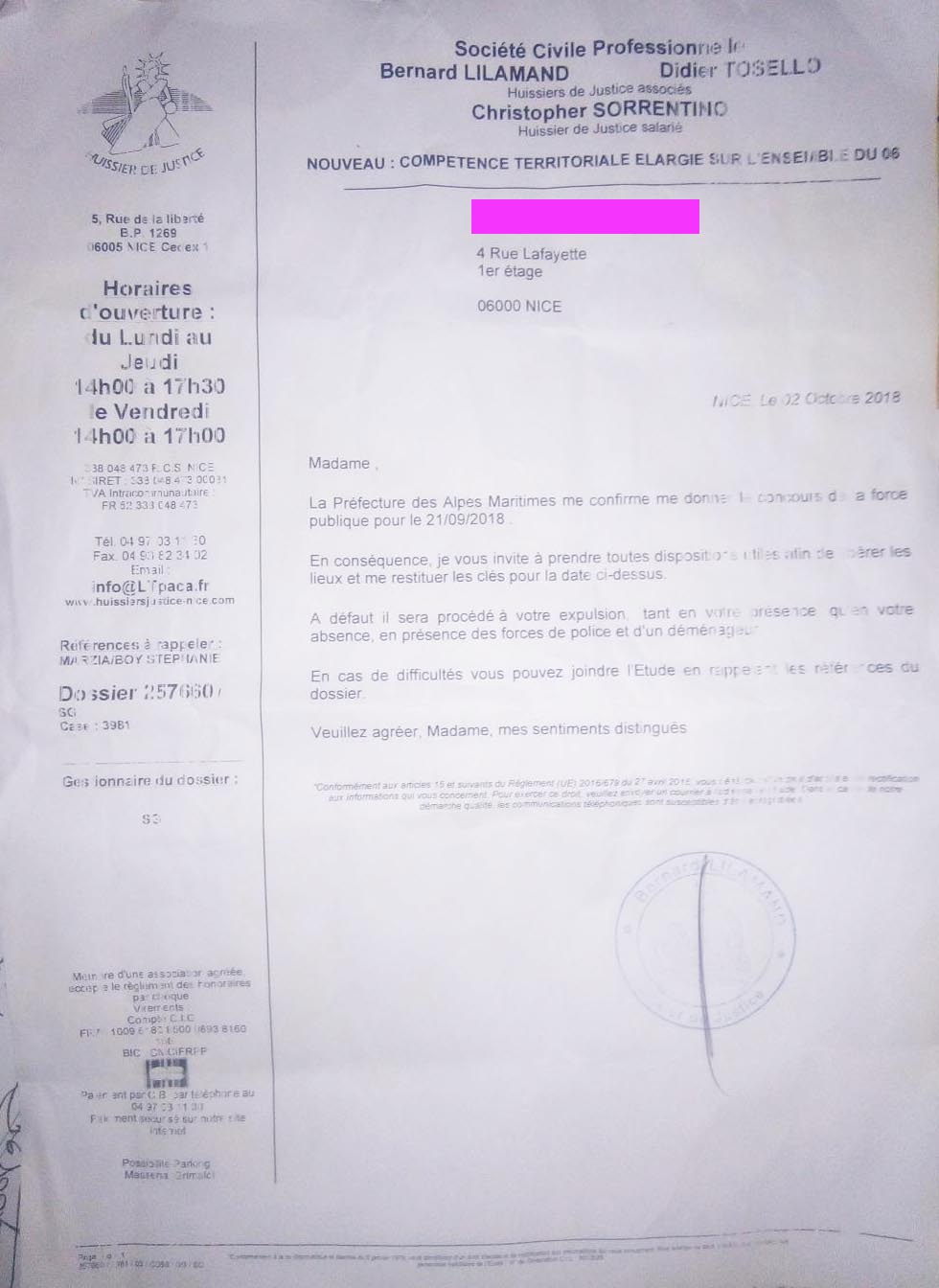 Alors devant les preuves irréfutables apportées par les expulsés qui démontrent sans équivoque que tout le jugement repose sur un fais et usage de faux, Zucarelli, Vigoli Rinaldi et la société d’huissier Lillamand, Tosello, Sorrentino décident de faire monter la pression.