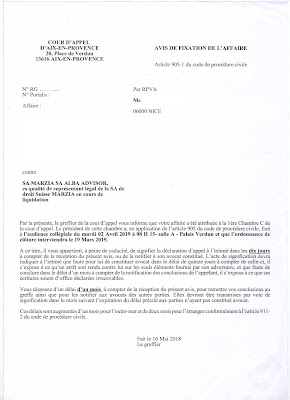 Finalement le référé réclamé sur la base d'un faux flagrant a donc lieu le 19 mars 2018, et le juge Caroline Prieur sans états d’âme accepte de fonder l’action en référé sur le faux mandat présenté par Zucarelli.
