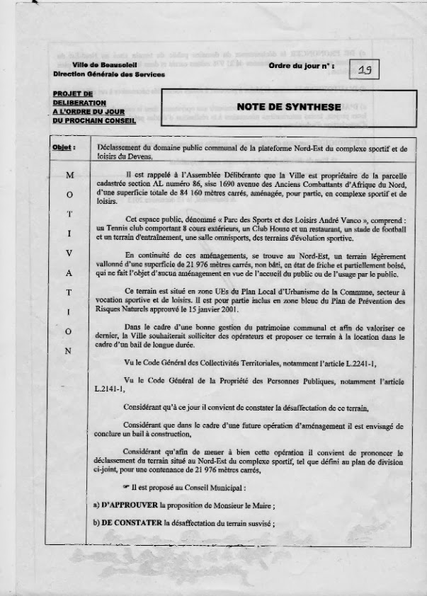 C'est chose faite dès le conseil municipal du mois de décembre 2013, mais en toute discrétion, comme pour tout ce qui touche au Polo à Beausoleil.