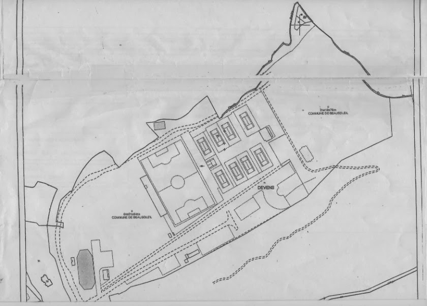 Ici sur la vue aérienne, on distingue clairement à gauche, en blanc, la tente qui abrite un terrain de basketball, puis l'ancien "stade de foot stabilisé" et son parking attenant, détruits au printemps 2013, sans autre forme de procès, pour laisser place au "terrain de paddock polo de Beausoleil". On distingue ensuite le terrain de foot en vert et à sa droite, les terrains de tennis. Enfin en orange vers la droite, le toit de la buvette du tennis club.
